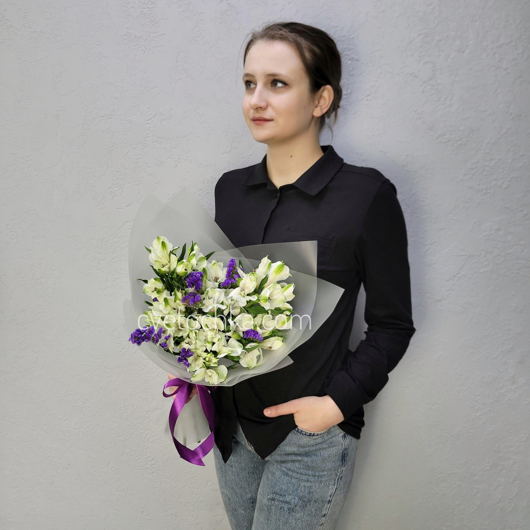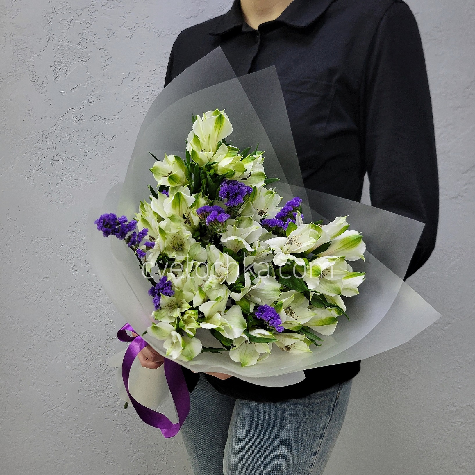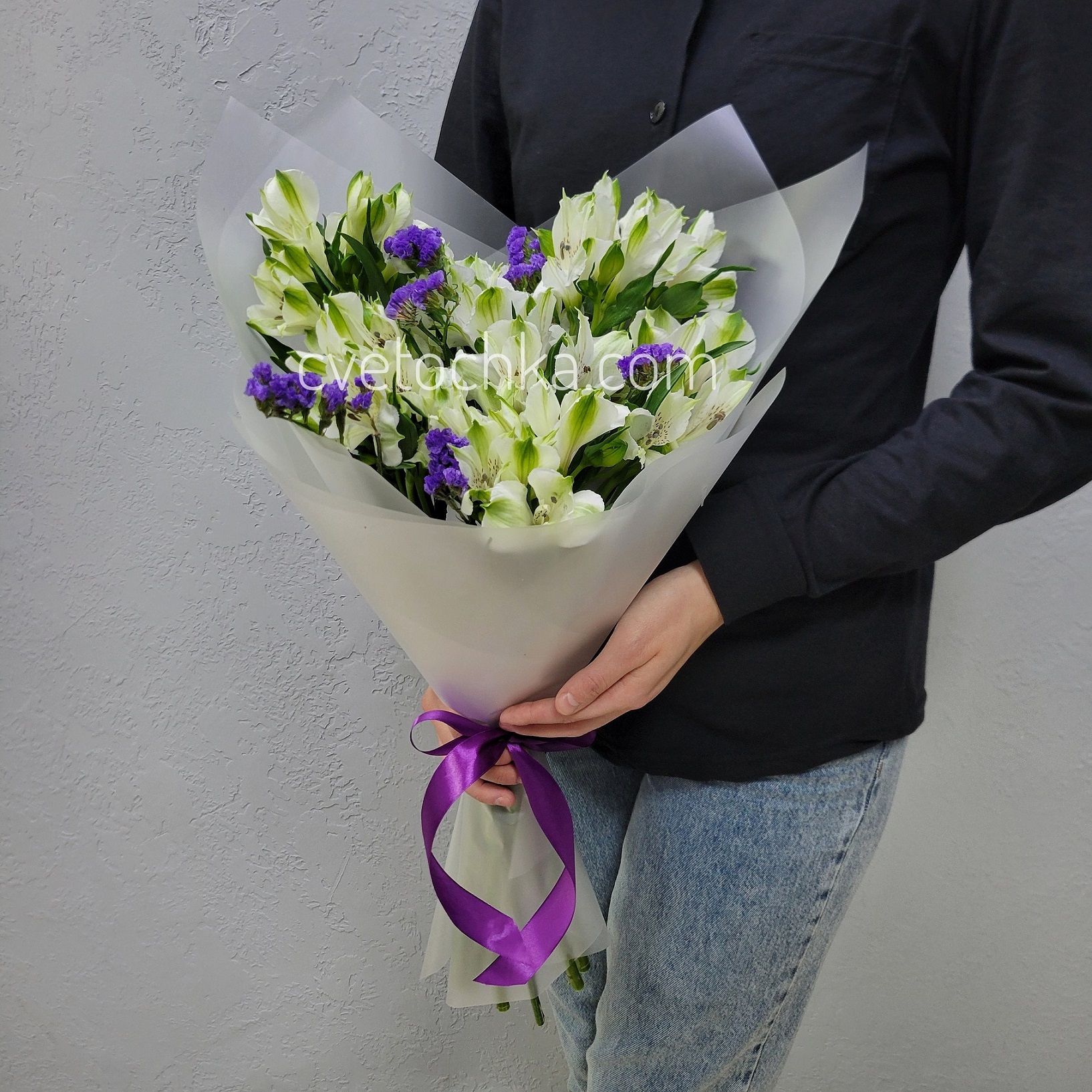 Вы можете купить букет из альстромерий и статицы с доставкой в Магнитогорске или оформить самовывоз из любого нашего магазина.