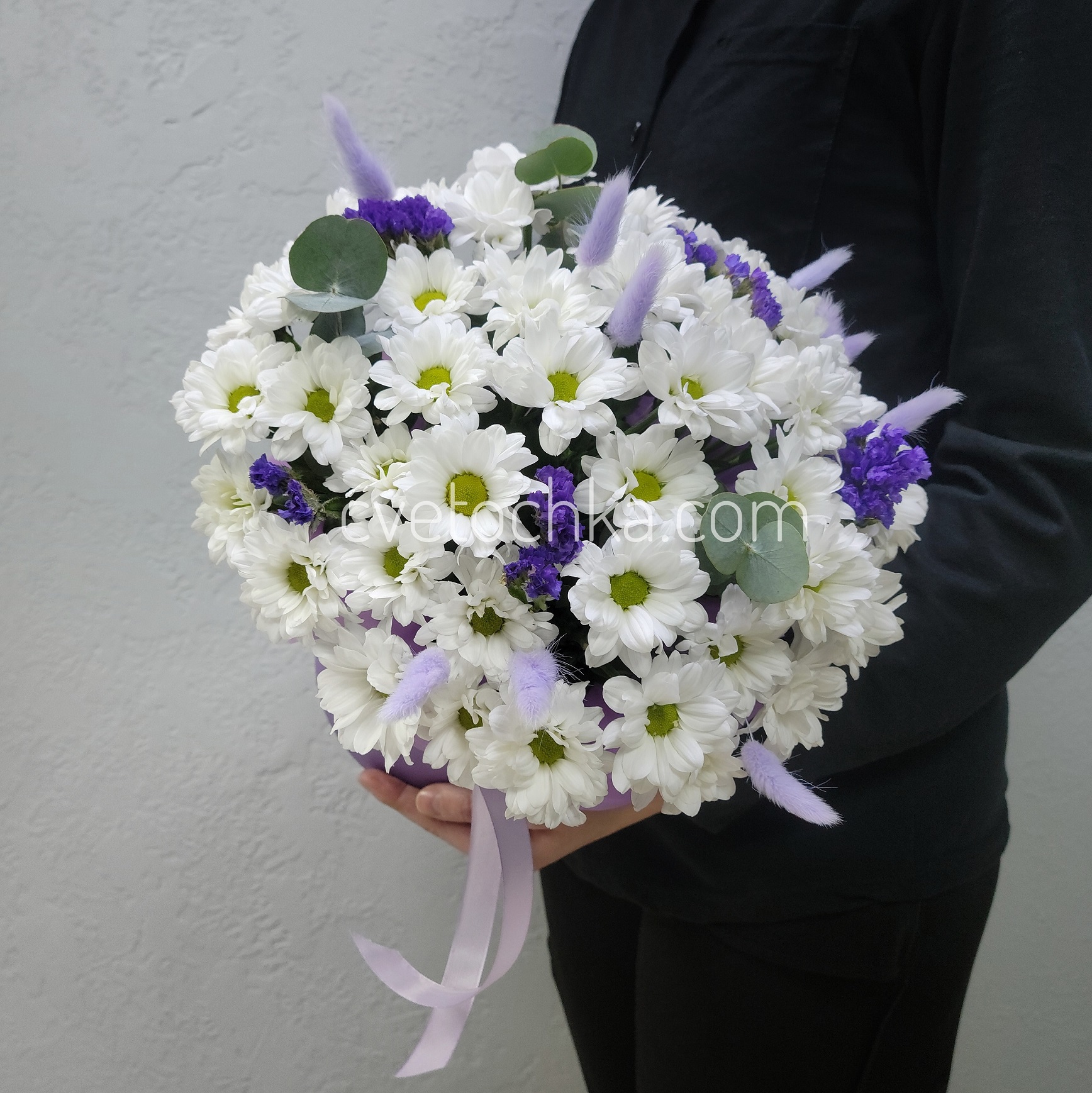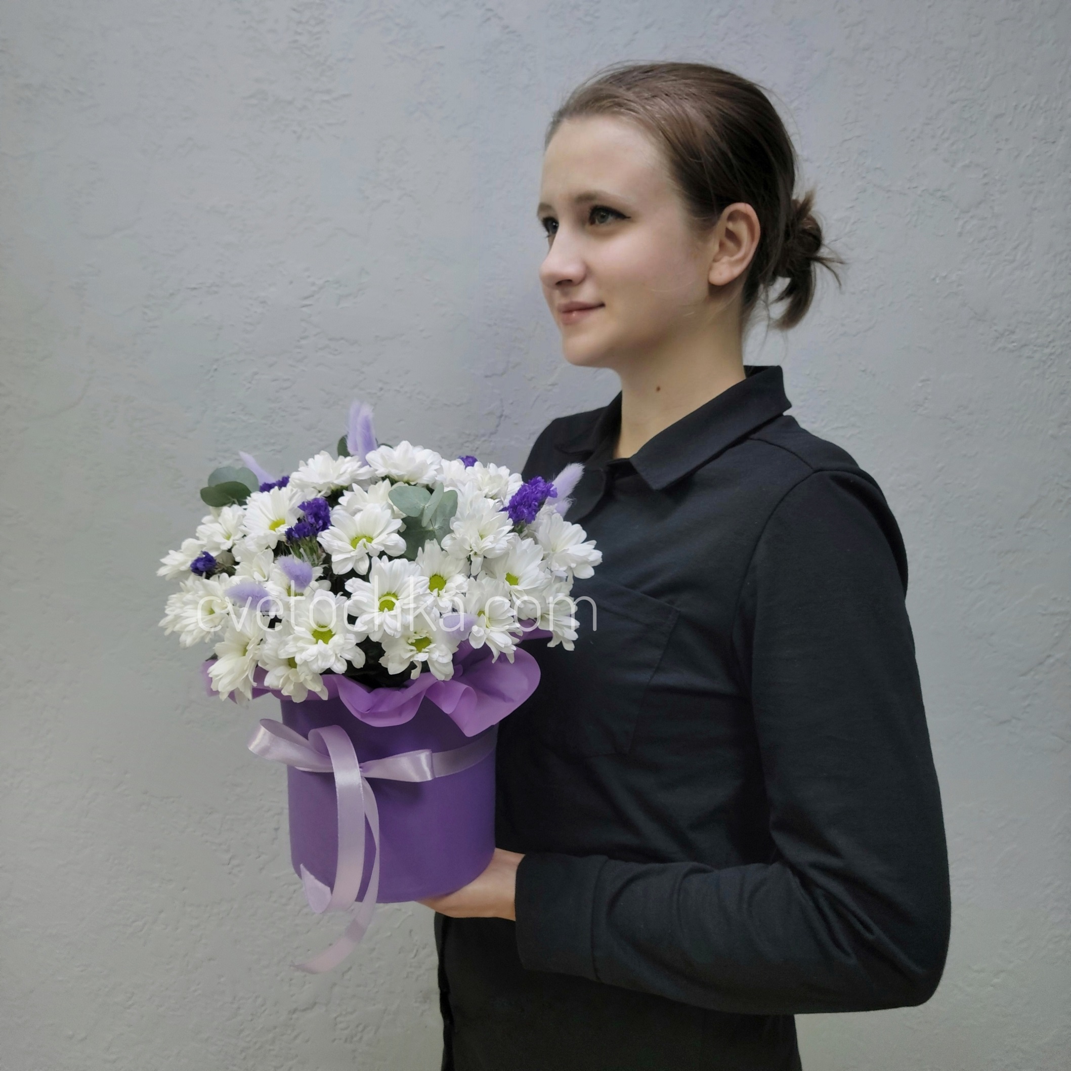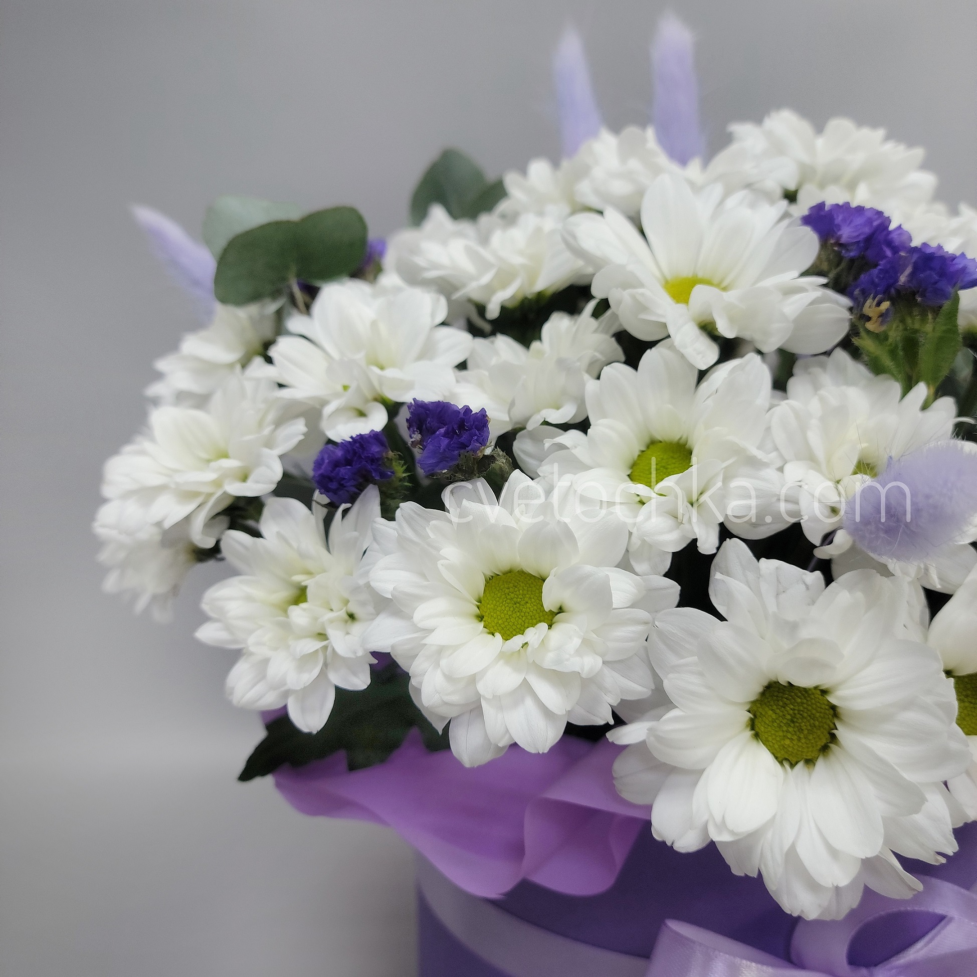 Вы можете купить хризантемы с сухоцветами в шляпной коробке с доставкой в Магнитогорске или оформить самовывоз из любого нашего магазина.