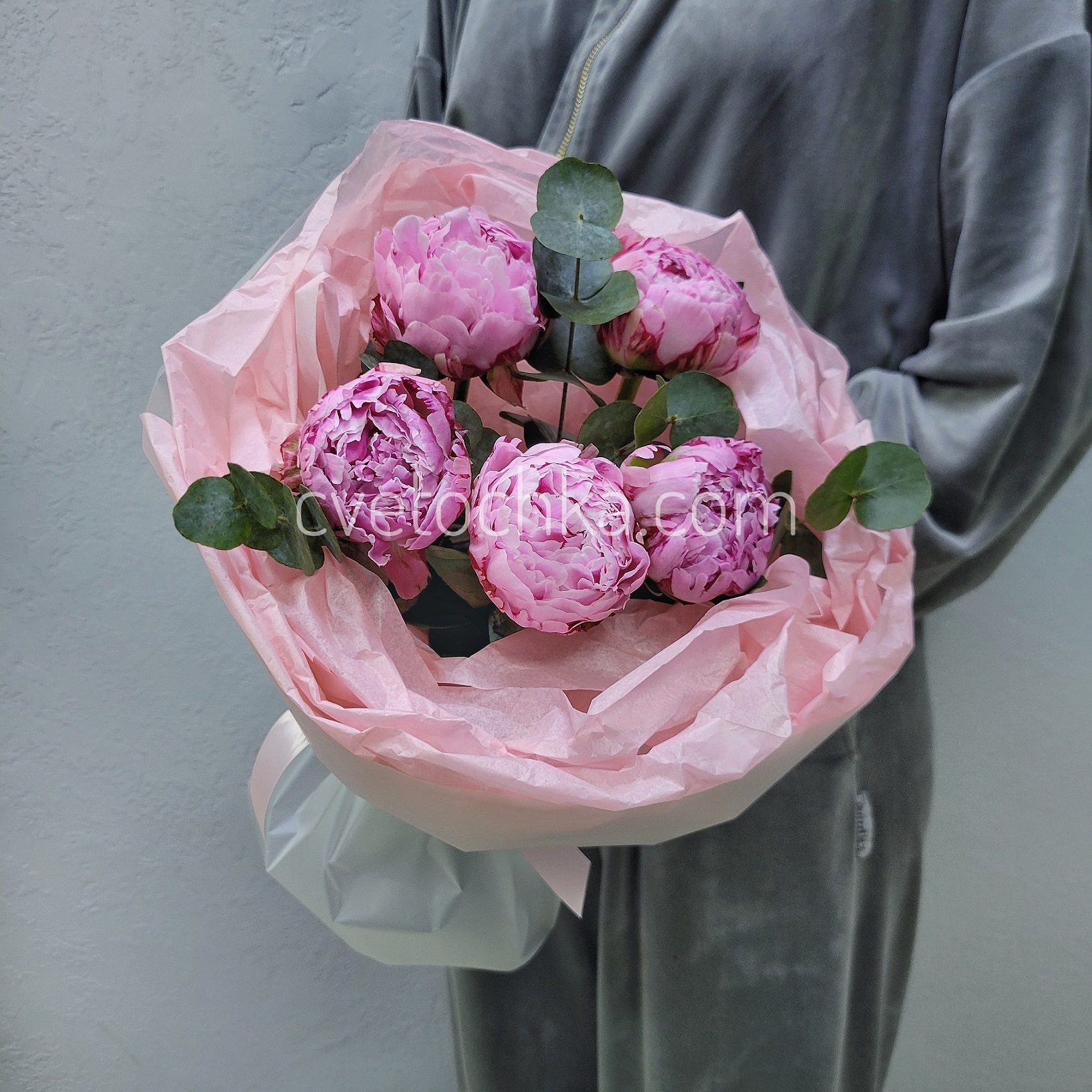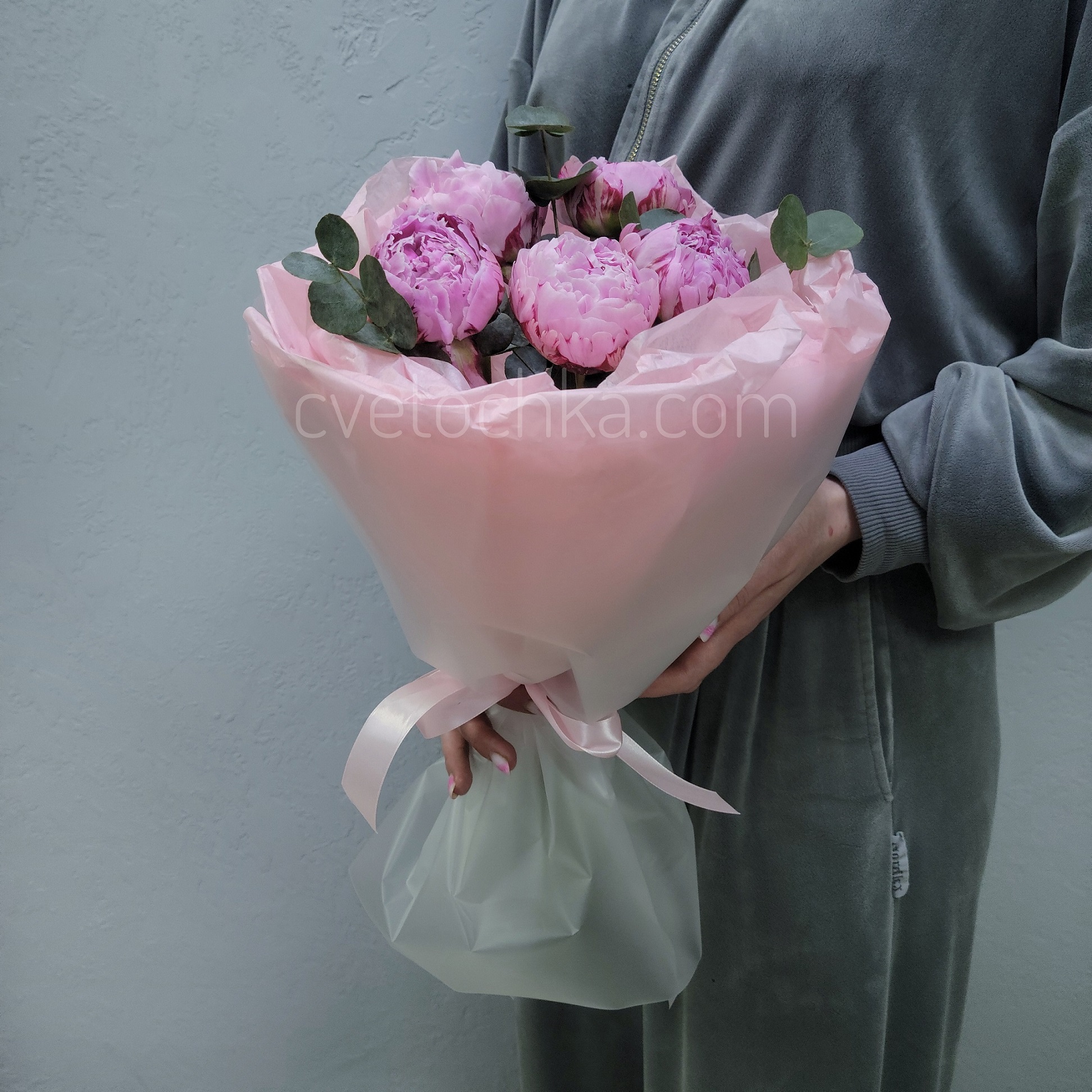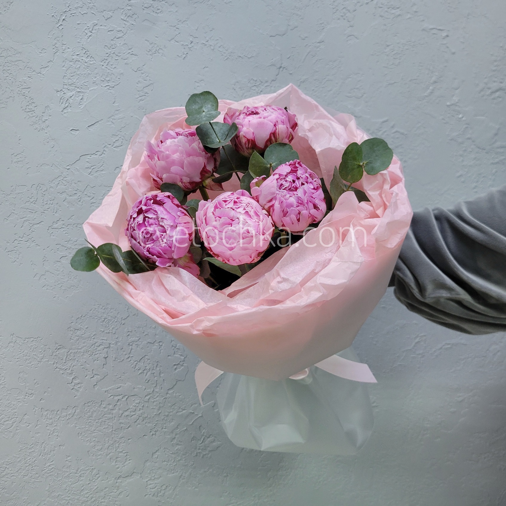 Вы можете купить букет из 5 пионов с эвкалиптом с доставкой в Магнитогорске или оформить самовывоз из любого нашего магазина – подарите мгновение нежности и радости своим близким!
