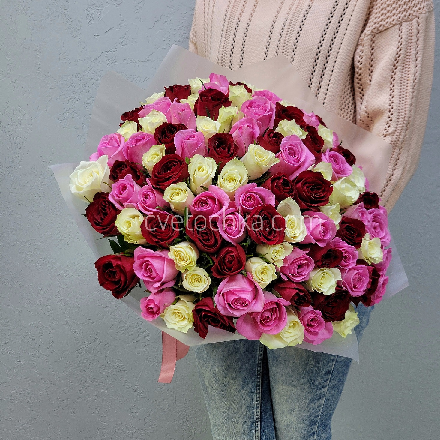 Вы можете купить букет из 101 розы с доставкой в Магнитогорске или оформить самовывоз из любого нашего магазина