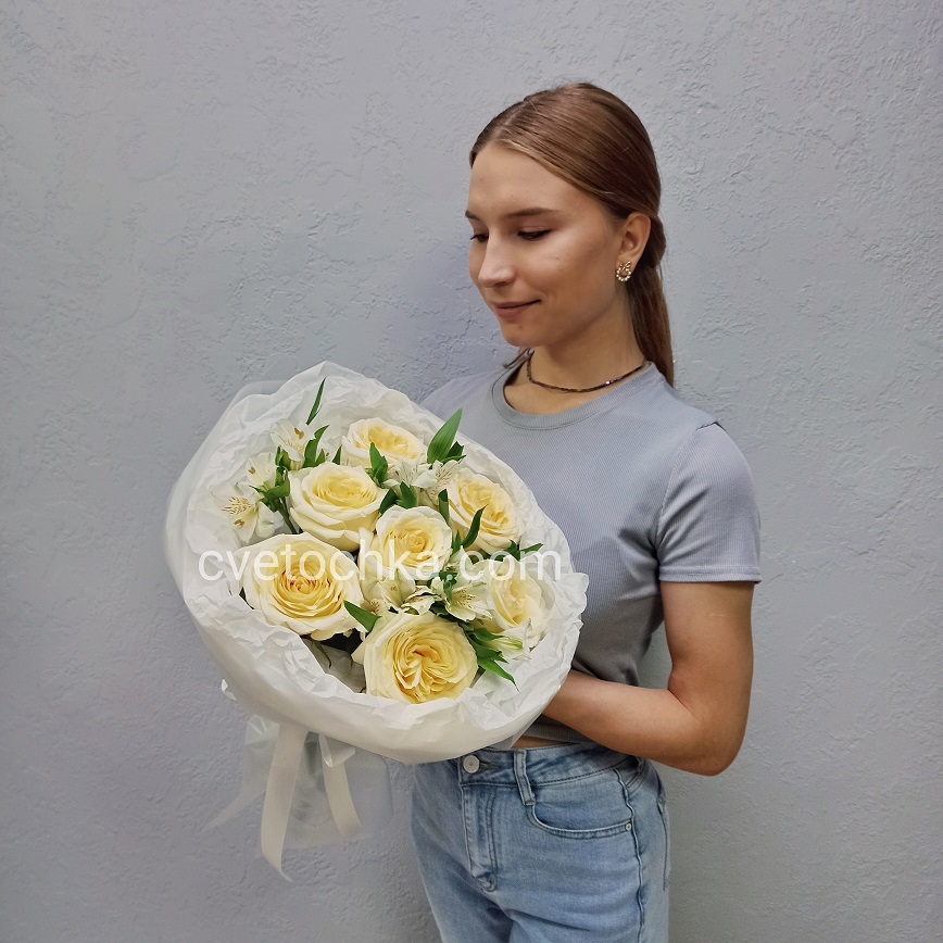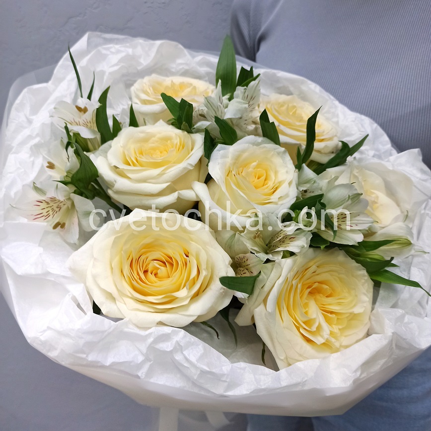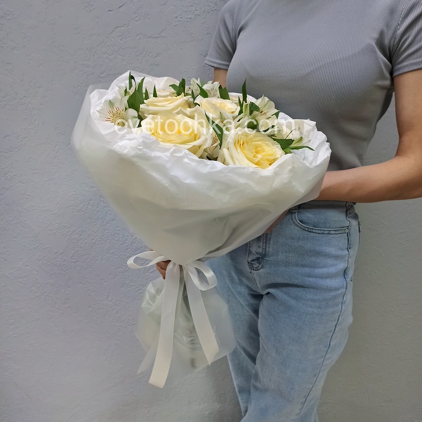 Вы можете купить букет с розами и альстромериями с доставкой в Магнитогорске или оформить самовывоз из любого нашего магазина