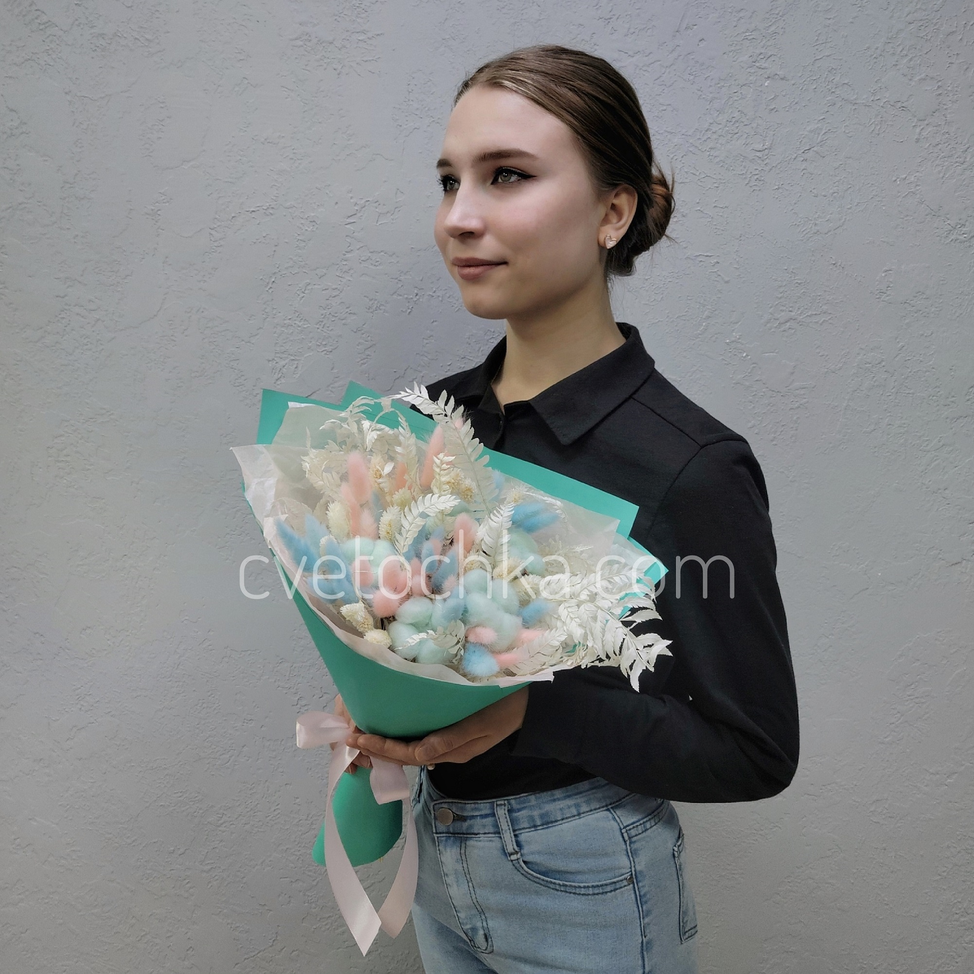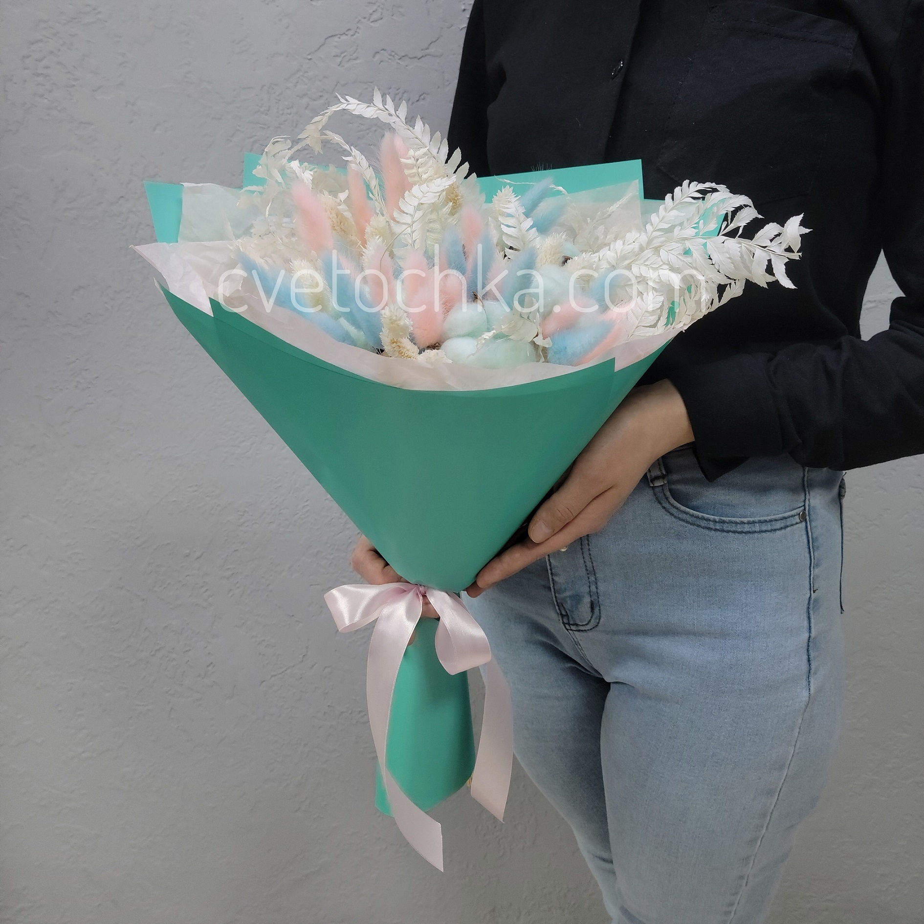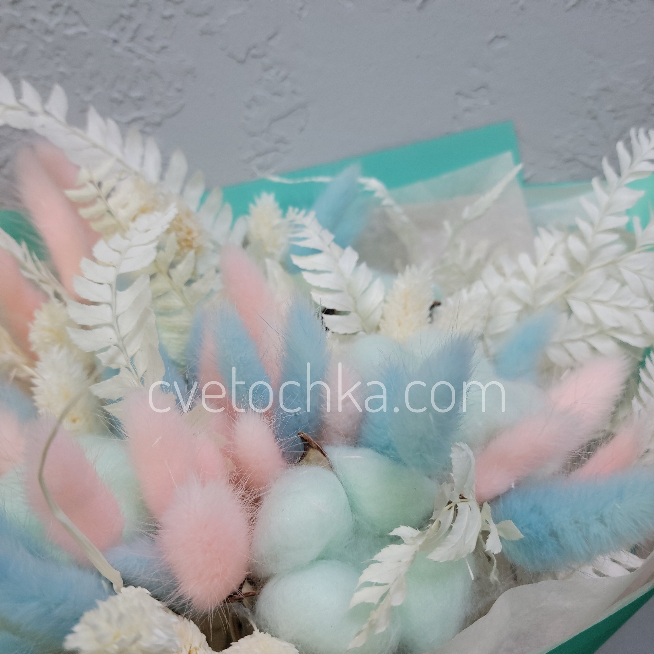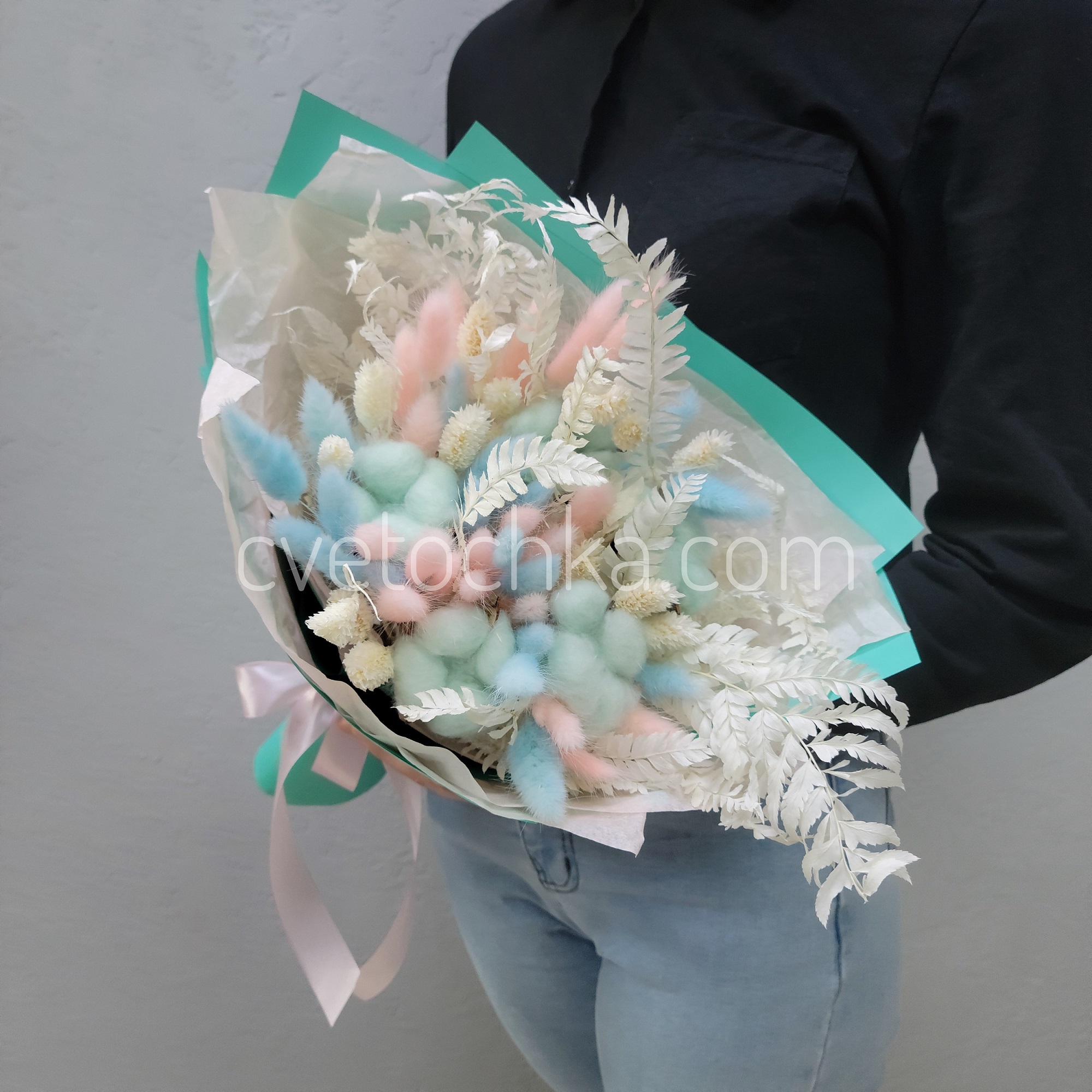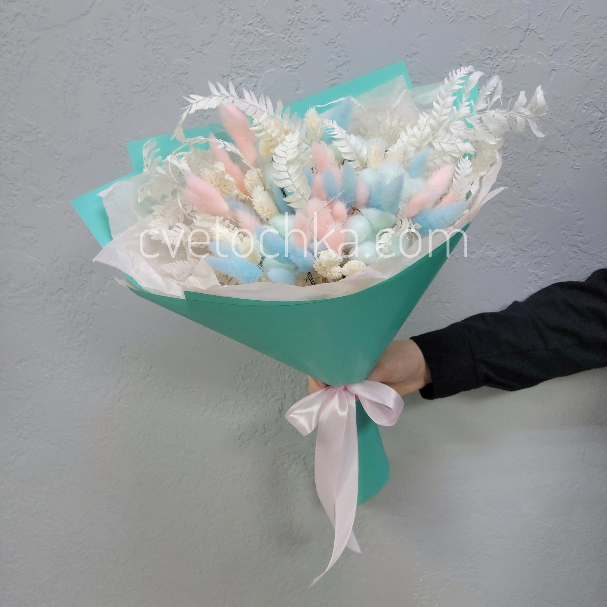 Вы можете купить букет сухоцветов из хлопка, лагуруса, фаляриса в нежной гамме с доставкой в Магнитогорске или оформить самовывоз из любого нашего магазина.