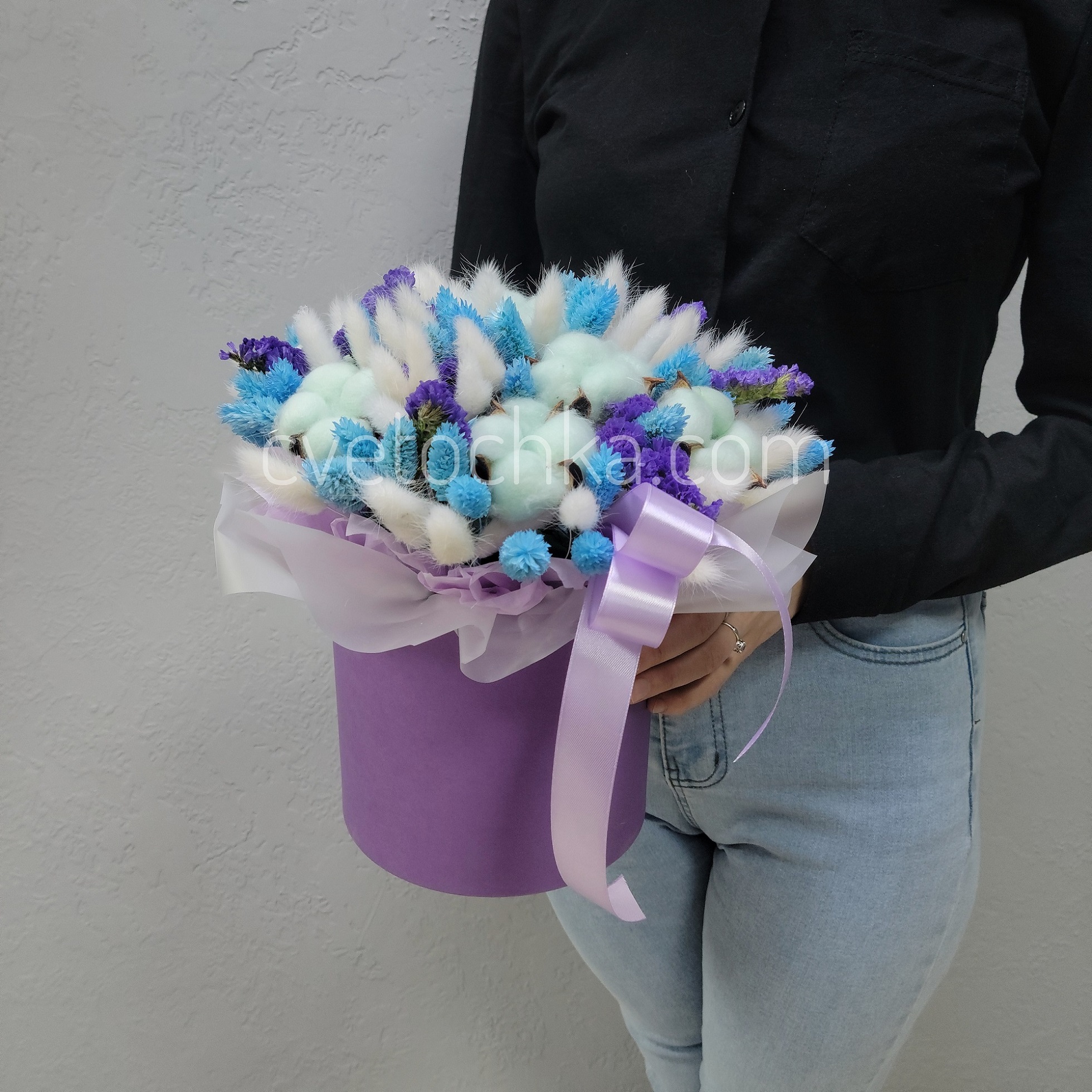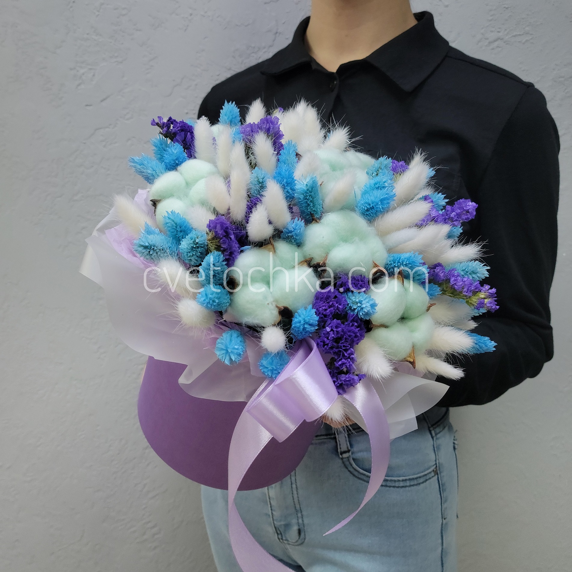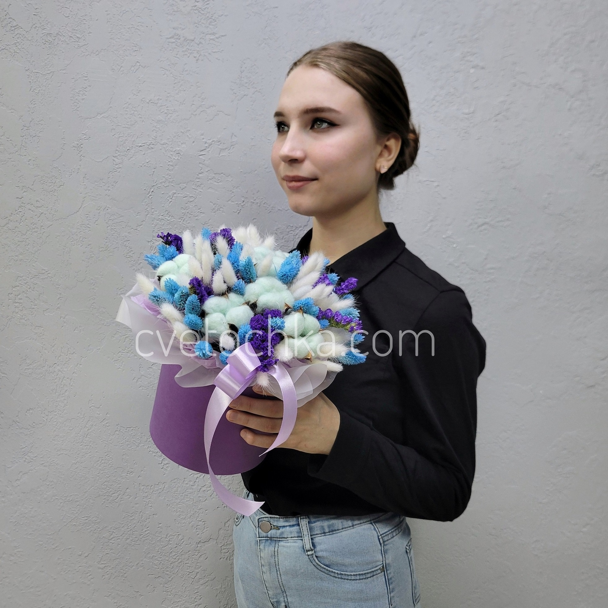 Вы можете купить сухоцветы в шляпной коробке с доставкой в Магнитогорске или оформить самовывоз из любого нашего магазина.